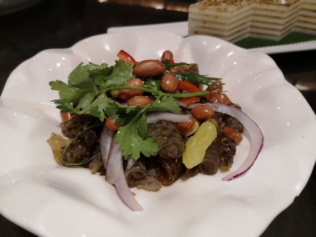 魔女锦鲤与朋友来到顺德觅食,首先来到陈村,讲到陈村最出名的莫过于系陈村粉,比较出名的有“黄但记”同“黄均记”双黄。之前顺德美食节的时候吃过黄均记的陈村粉好好吃,本来想去回味,但在朋友的极力推荐下先来品尝这家黄但记。反正都是和黄均记在同一条路上,吃完这家再试另外一家,甘先可以对比有什么不同。 黄但记的门面和店铺都比较大,装修都比较干净整洁,凉爽的空调,而且还有2层,帮衬的人都比较多,网上还有团购的现金劵,但需要注意的是如果用现金劵必须要点餐前兑换了,否则点餐后就不是使用。另外如果需要开发票的,就要收每个人3元的茶位费...尼度的菜色比较多,除了各式各样的陈村粉外,还有汤粉,炒饭,靓汤,套餐饭,粥类,茶类,果汁,甜品,各式的煎炸小吃。 点了一个推荐的笼仔蒸粉类的牛腩蒸陈村粉,还有特色创意煎让陈村粉。牛腩蒸陈村粉需要25元,煎让陈村粉20元。 牛腩蒸陈村粉用笼仔上,下面铺了荷叶,陈村粉伴上牛腩汁和几块牛腩,表面再洒了少许的芝麻。陈村粉薄、滑,但腩汁唔够,味道偏淡,后来问服务员加腩汁才行。 煎让陈村粉,创意的做法,用薄薄的陈村粉包裹着香葱,红萝卜粒等等的配料,再配上一碟辣椒酱。只能说这煎让陈村粉淡而无味,如果不点酱汁完全是没有味道的。但它只配辣椒酱,叫不吃辣的人点算。。。。所以我唯有点牛腩汁吃。。。 这里除了现场吃的,还有可以带走的传统鸡蛋卷,可以买点当手信。 总的来说觉得味道偏淡,个人还是比较喜欢另外一家陈村粉店。