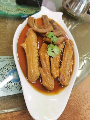 [调皮]烧鹅是这里的必点菜,食过的烧鹅最好味道,没有之一。 [调皮]另外,每年端午前后,是南海盐步秋茄产量最鼎盛的时期,四方食客都会慕名而至,品尝这人间美味。这种长着“观音指”,顶着“观音帽”的盐步秋茄,以其肉嫩、汁多、籽少、清甜而在秋茄界“独步天下”。所以这里有许多用秋茄做的菜肴。 [调皮]佛跳墙:是一道名菜,荤香可口、不油不腻,营养极其丰富,对身体健康的滋补作用很大。佛跳墙的功效有以下几种。 佛跳墙选用多种海味产品和少许肉类原料,盛入特制瓷坛内长煨时间制而成,荤香可口、不油不腻、补肾、补血、滋补强身,有很高的食疗价值。 [薄荷]环境: 一般 [服务铃]服务: 不错 性价比;高