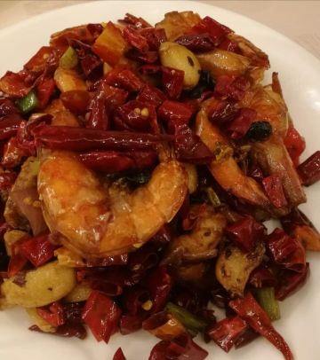 手撕盐焗鸡,虽然分量不算大,但味道很有特色。脆皮咕噜肉和霸王炒虾,才28元/例,撚手小菜却做出了星级的水平。饭后还送了水果拼盘,可见店家的待客诚意。 这里环境舒适,出品不错,服务态度好。