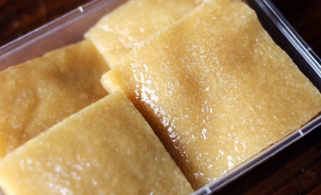 HUANJIELUNJIAOGAO在广东普通的白糖糕在伦教做成了有名的地方美食伦教糕,尤其是欢姐伦教糕更是最负盛名,很多人都会冒名而来。糕看上与一般白糖糕无异,但入口香甜不带一点酸味,怪不得这么有名,看到很多食客打包回家,又怎能不给家里人带上一份特色美食呢。