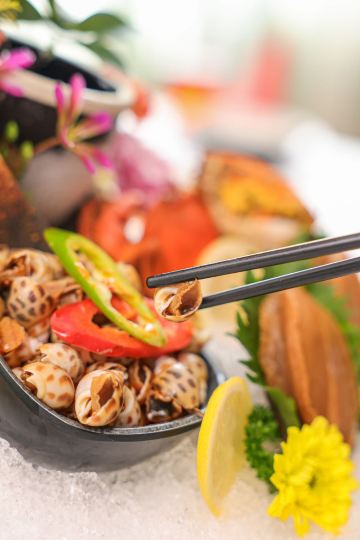 黑蒜烤生蚝,养生豆腐,炸牛奶卷,顺德鱼生捞起,XO酱萝卜糕焗肉蟹,秘制酱焗罗氏虾,凉拌冰爽鱼皮,墨鱼饼拼猪肚饼,无骨特色桂花鱼,烧鹅,鱼饼,干炒牛河,伦教糕,海鱼刺身,煎讓蛇皮,泰汁局蟹,薄脆鱼饼拼鲮鱼腩,蜜汁吊烧鳝,白蛤烩杂蔬,凉瓜焖虾,白灼河虾,濑尿虾,豆豉蒸鱼,花椒蒸鱼,巴鱼汤,稻香猪手,丝瓜鱼腐,炸鲮鱼翅,古法马拉糕,香煎墨鱼饼,韭菜酥,马拉糕