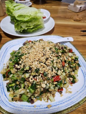YoYo_7S0T1O1C本地人强推!《寻味顺德》上榜的园林私房菜 隐于顺德大良旧寨村的东坊味道,是本地人私藏的宝藏餐厅!青砖瓦房、竹影婆娑的庭院,木门趟栊与藤蔓交织,处处透着岭南水乡的古韵。门前停车位充足,店内既有私密包间也有开阔大厅,聚餐宴请皆宜。 🥢菜品推荐: 1️⃣蚬肉生菜包 蚬肉与腊味、葱段爆炒,咸香浓郁,裹上脆嫩生菜,一口咬下鲜香迸发,口感层次丰富。 2️⃣椒盐乳鸽 外皮金黄酥脆如琉璃,肉质紧实多汁,椒盐香气渗透骨髓,连骨头都入味! 3️⃣芥末沙拉虾球 虾肉弹牙饱满,裹上微呛的芥末沙拉酱,甜辣交织却不抢鲜味,冰镇后更显清爽,伴碟的木瓜也很清甜。 4️⃣白灼鲜鱿 鱿鱼脆嫩无腥,搭配酱油芥末提鲜,原汁原味的海洋气息瞬间激活味蕾。 🍽️东坊味道私房菜·地道顺德菜(大良店) 📍大良东坊街5巷3号(旧寨公园旁边)