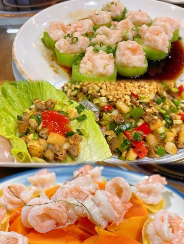 盐油蒸鱼,香煎墨鱼饼,凤城炸牛奶,招牌盐油蒸禾顺,无骨猪手,盐焗乳鸽,花椒凤爪,猪肚饼,煎焗爽鳝,炸云吞,白灼虾,烧洲澳洲牛肋肉,黄瓜盅,墨鱼饼,捞鸡,鱼饼,炸牛奶