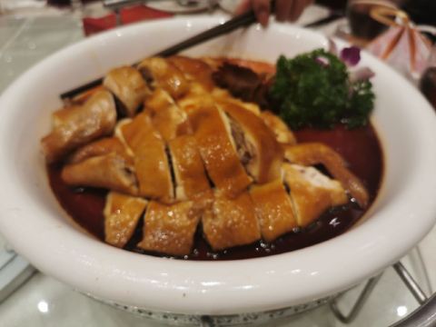 今晚是去吃结婚大餐,出品的菜按摆五十围算,还是可以的。比如全只乳猪,皮薄和脆口,算是达标了;豉油鸡采用本地鸡,有鸡味,符合广东人的标准。其它采也是不过不失吧。环境很好,有地下三层停车场。