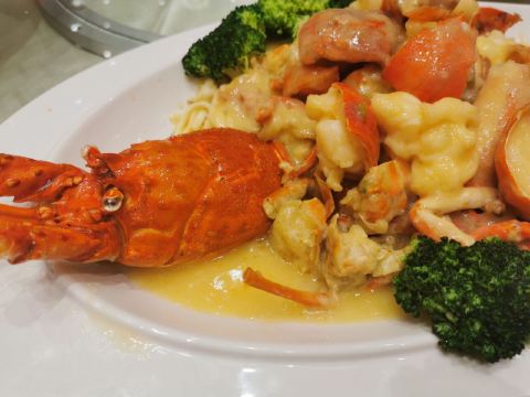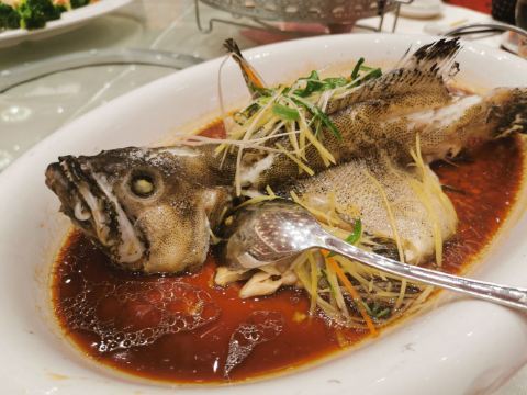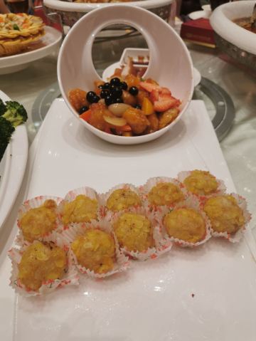 葱油炒面焗大虾,白灼鸳鸯菜,澳门化皮燒肉,鸿运烧味大拼盘,白灼虾,烤羊排,乌金流沙包,芝士流心挞,自制咸肉粽,捞起北极贝,鸡蛋肠粉,美味玫瑰豉油鸡,鲤鱼门虾饺
