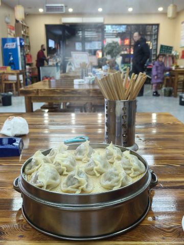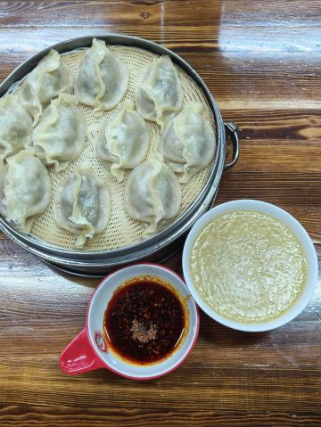 来了陕西,整天和碳水打交道。玩到咸阳住的酒店附近,发现一家评价挺不错的蒸饺,于是慢慢的走过去尝试一下。蒸饺馆离福园巷子很近,走路只要几分钟。店堂又大又明亮,看上去很干净。团购一笼饺子加小米粥不到20元,现蒸也快没有等太久。饺子鼓鼓囊囊,汤汁鲜美。肉馅有微微的甜味又不过分,配上自己打的蘸碟更是加分,不比那种网红店差。