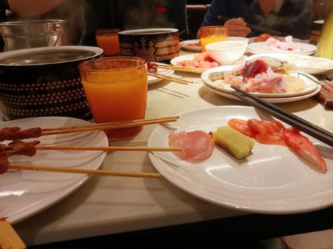甄haokan今天是母亲节,做为远嫁的女儿,就像父母丢失的孩子,除了电话问候下,家人群里发个红包,好似没办法做的更多,反倒是夫家,照顾有加,临时婆婆有事那只好借母亲节名义带公公吃个午餐,CAN+餐,吃过早餐,家里事情安排妥当,到东二环泰禾11点出头,提前买餐券,交10元不浪费食物押金(泰禾会员卡有折扣哦每张卡享受88折优惠,不要忘记使用啊,第一次用黑金卡,那感觉倍爽)后就可以进场了,2个小时的用餐时间,午餐148晚餐158,稍微看了下,食材不少,光喝的就有鸡尾酒、各类果汁、朝日啤酒、酸奶、清酒。现在开始推出小龙虾,很受欢迎基本是上来一锅光一锅还有烤生蚝也是一样,各类海鲜涮菜还是可圈可点,就是生鱼片速度跟不上,水果种类稍少只有龙眼、菠萝、西瓜、火龙果。 吃自助餐已经是没多大胃口,带老人家来试试,推荐:墨鱼滑、虾滑、烤鸭头、羊排、墨鱼蛋。