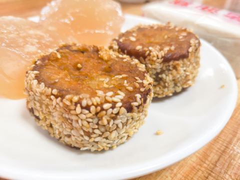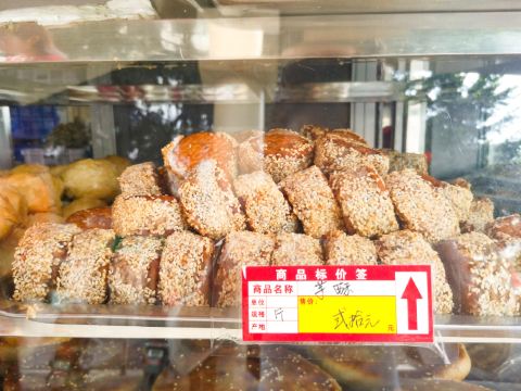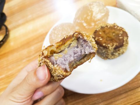 地址:醉仙楼(乌山路37号) 价格:5-10元不等,非常便宜。 福州“所剩无几的老品牌之一”,当地人心目中最最地道的糕点。 这次主要尝试了芋酥、马蹄糕和猪油膏三款,简单说一下。 芋酥最外层是一层白芝麻,往里是糕点皮包裹的一大块芋泥馅!一口下去,芝麻的香、表皮的韧和芋泥的醇厚,全都一股脑送到了嘴里,瞬间大满足! 马蹄糕个人认为有点像钵仔糕,但是比钵仔糕大更多。咬一口,唇齿间能感受到切割感,Q弹有韧性,咀嚼中把马蹄糕的甜香都释放了出来。 猪油膏跟小时候记忆中上海的状元糕还是有点像的,不同的是更加紧实,掰开甚至都能看到纤维状的纹路。 以上三款超级适合嗜甜的小可爱,如果本身不爱吃甜的,可能会有点腻。