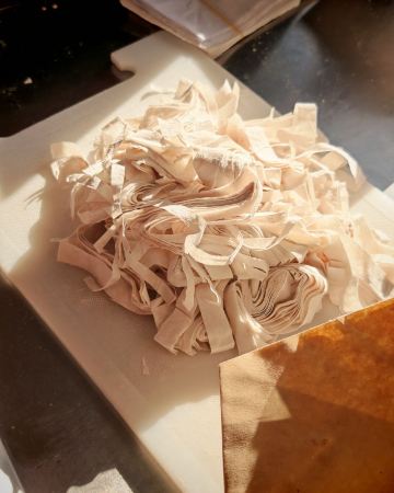 每年大年三十家父都会叫我去依海买燕皮和燕丝,今年也不例外!今年直接买肉燕和燕丝没有买燕皮,不过鲜燕丝是用鲜燕皮赶工现切的所以很粗,燕丝一斤切下还比燕皮便宜了5元/斤。 也是福州老字号了,没有某利会做营销,某利今年又是重金请前故宫院长来打卡,又拿出许久不打的手工燕皮绝活出来拍摄吸睛!本地人不去游客店凑热闹,羊毛出在羊身上难怪价格年年涨。感觉今年肉燕和燕丝比往年口感都差了些。