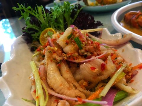 招牌咖喱皇炒剔骨牛肋条,酸辣无骨凤爪,泰氏碳烤猪颈肉,冬阴功汤,皇室布甸,招牌咖喱皇炒蟹,青柠蒸龙胆鱼,咖喱皇炒海虾,炭烤猪颈肉,招牌咖喱皇炒鸡
