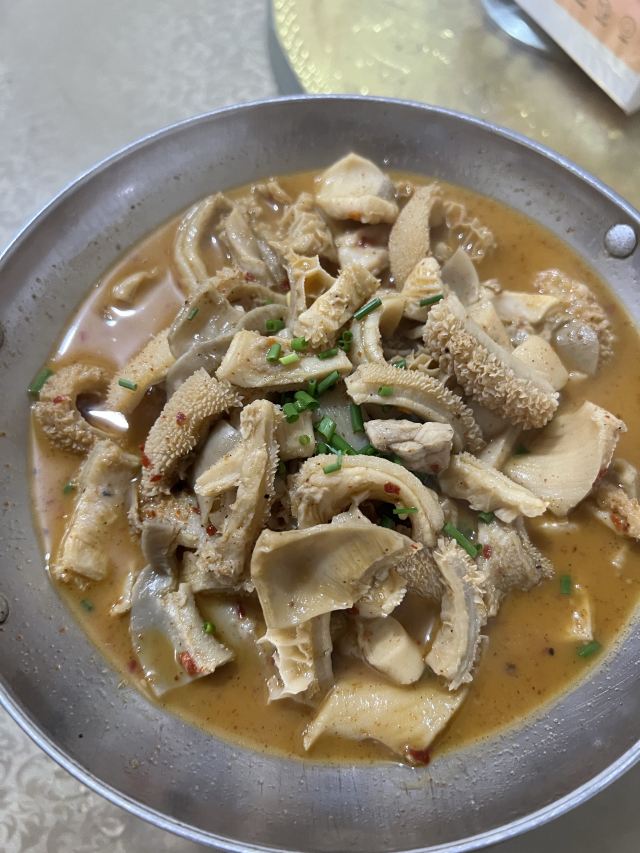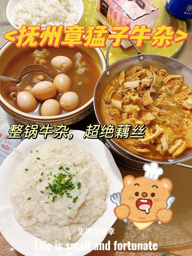 口味:在抚州必须要吃一下临川牛杂,这家店名气挺大,看店里这么多奖状和荣誉就知道好吃 △牛杂(牛肠牛肚)小锅78,两个人吃足够了,炖得再烂一点就更好了,锅子看起来不大但全是牛杂,辣是那种一边哈次哈次说辣,一边又还想吃的那种,我很喜欢,我同伴认怂了,要了碗白水在那里涮,我用这个汤拌米饭很过瘾。 临川藕丝28,这个真的超爱,擦成丝,既有一点点藕的脆,又滑溜溜的,用猪油炒的很有香气。清炖牛鞭汤 这个原价248,怕吃不完让老板炖个小份的148,有加红枣枸杞党参,汤很好喝,里面东西也好吃,配了6个鸡蛋,两个人吃刚刚好。 环境:二楼包间有空调很凉快,来抚州值得一试。 收藏 评论