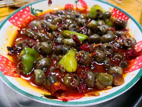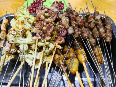 旅游度假烧烤店开在住的宾馆了旁边,霄夜很方便,据说是家老店了。本想坐外面吹吹凉风,可惜三桌都有人了,上店面二楼较大,空调超好,吹得后背凉凉的。因刚吃过饭过来补酒,点了些烤串和螺蛳。大家对螺蛳的口味比较赞,对烤串评价比较一般,将就吃吃。