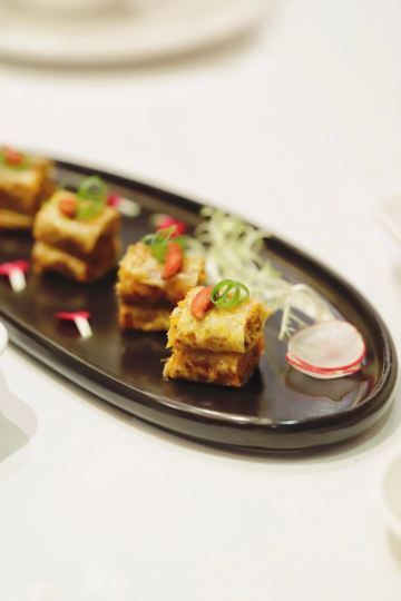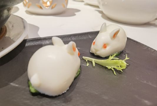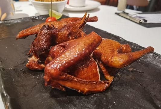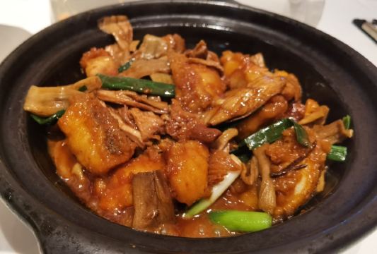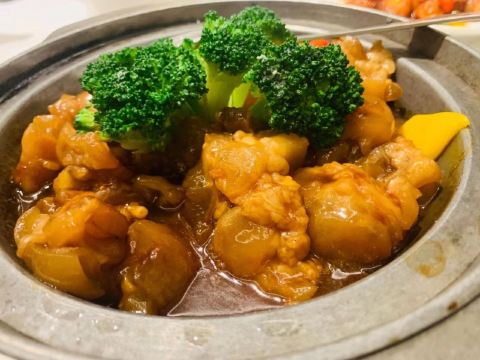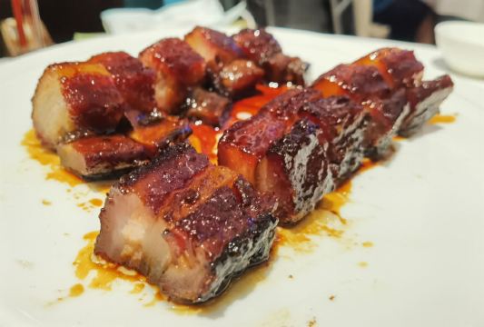 Kami Kwong颇有名气的粤菜饭店,店内环境典雅高贵,精致大气,入门便看到各种生猛海鲜,服务贴心周到,有礼貌,用餐环境舒适,但空调不太够,用餐时有点热。 出品方面,①秘制牛肉卤水花生,味道不错,花生软绵入味,但牛肉就不多见了;②秘制脆皮黑叉烧,肥瘦适中,软糯香甜,入口即化,酱汁在口腔与肉香混合,一口一块很满足,但多吃还是会腻;③客家芋荚生焖龙趸,香味四溢,龙趸肉质紧致,金针菜吸收的酱汁爽脆入味,但略略咸了点;④台山黄鳝饭,香味浓郁夺人,酱汁包裹着每粒米饭,粒粒分明不粘口,黄鳝的细腻与米饭的清香简直绝配;⑤红烧乳鸽,外表焦脆,肉质纤维细致,有肉汁,不错; 总体菜品份量足,出品水准稳定,味道上来说不会踩雷,但味道略微偏重手