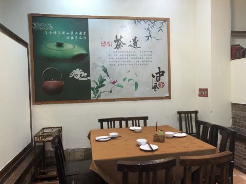 陌染MM周末过来沙湾玩,中午就在这家餐厅喝茶,中午有早茶直落,一张A4大小的餐纸正反面都印满了点心,选择很多。我们第一次来这里吃东西,正午的时候需要等位,人挺多的,门口有停车位,但是不算很多,就连餐厅外围沿着围墙也都停满了车子,把人行道都塞满了,停车不用收费,有专人指挥停车。一进大门正对着的那一区是功夫茶区,从收银台旁边走进去那一区是普通茶区,我们坐功夫茶区,餐桌椅都是实木的,有点古色古香的味道。茶位收费10元一个茶叶,如果两个人的话,给你一包茶叶,另加一位茶3元,就是等于两个人茶位13元,也可以按每人一包茶叶的价格收费,就是20元。 点心出品不错,姜汁牛肉烧卖,一笼四粒烧卖,好大的一粒,上面堆了一些姜茸,牛肉烧卖很有牛肉味,啖啖肉配上姜味,味道不错。水牛奶蛋挞也很棒,一碟四个,皮很酥,中间的蛋挞馅是用水牛奶做的,所以是白色的,和传统的黄色蛋挞有不一样。最好的一点是,不是很甜,只有淡淡的牛奶香味,对于一些不喜欢吃甜食的人们就最适合不过了。虾饺也可以,里面有挺多的虾仁,虾仁也很新鲜,不过个头就不是很大了,一口塞进一个虾饺,还是蛮不错的。酱香蒸凤爪,我觉得这里的酱挺好好的,凤爪新鲜一些,没有太多的速冻口感,还是新鲜蒸出来的,热乎乎值得一尝。
