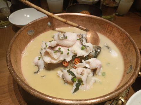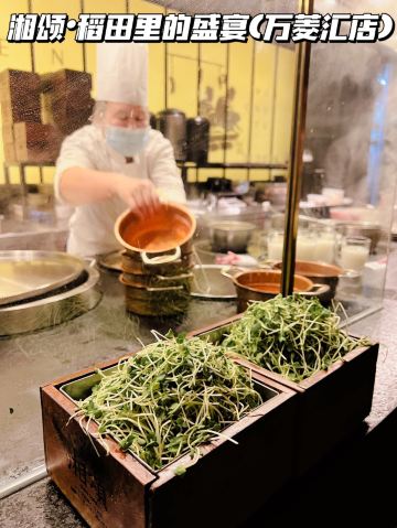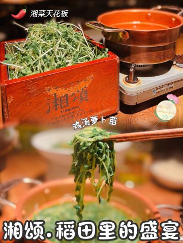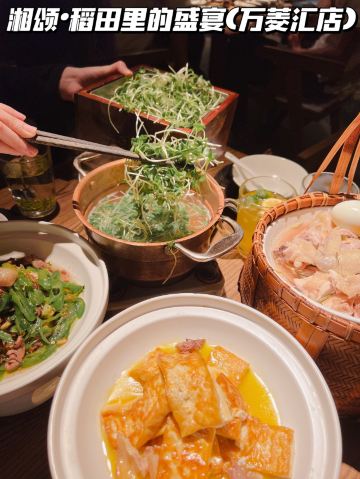 正牌一旧云源味湘菜和味生活|隐藏在万菱汇的广州品质湘菜馆 ❤️湘菜天花板-湘颂开到万菱汇啦,火爆得不得了,约上小伙伴来试试! 🏠环境: 装修高档大气,自然温暖,宽敞明亮。开放式厨房🍽,干净卫生。 🌾推荐: 🍵米浆桂花香,用纯米粉煮成,加上桂花香,又甜又营养,可以当主食。 🐟饭稻羹鱼,荷花鱼煎香,用米浆熬成鱼汤。鲈鱼切片,用水灼熟,把鱼肉放在烧热的岩石当中,用紫苏+青椒🫑圈调味,淋上鱼汤🥣,就做成一个地道的湘菜了。这个菜我第一次吃,鱼肉很嫩,鱼汤醇厚鲜美,是湘菜中的功夫大菜,营养健康。 🐷炒黄金六两,就是青椒炒五花腩,辣味不高,青椒🫑爽口软嫩,猪肉很嫩不干柴,这个菜非常棒棒哒。 🐔鸡汤萝卜苗,用母鸡熬制的纯鸡汤,用铜盘装着,现场用火烧热之后,再下萝卜苗,鸡汤开之后就可以关火了。这样做出来的萝卜苗很嫩很爽口,非常鲜甜。 🌴不愧是湘菜连锁品牌,口味自然健康,服务💁♀️细致周到! 🥂吃湘菜少不了时尚国潮范的时客大师金渐桂花酒,0香精、0色素、0防腐剂,最适合和朋友分享! 带着时客去约会👫吧~ 🏠餐厅:湘颂.稻田里的盛宴(万菱汇店) 🚗地址:天河路232号万菱汇L3楼40A号铺 #万菱汇 #湘菜馆 #时客大师 #桂花酒