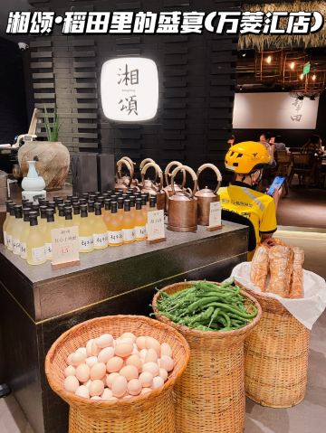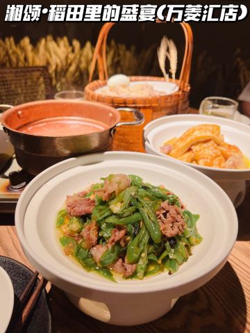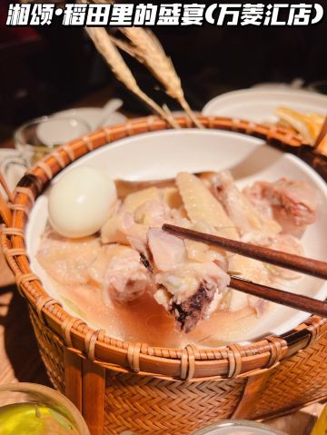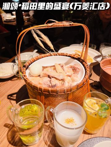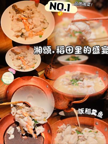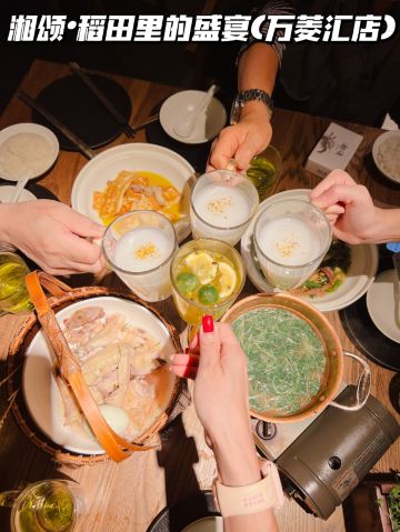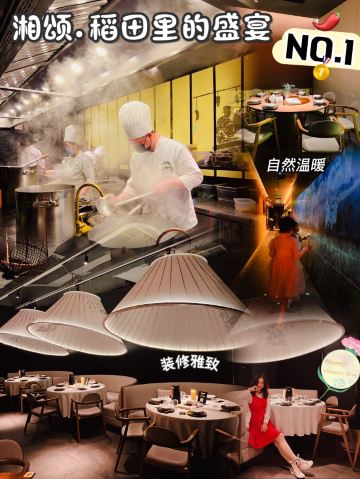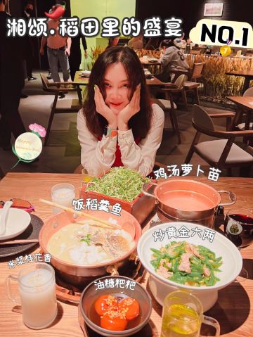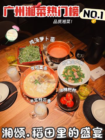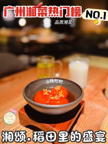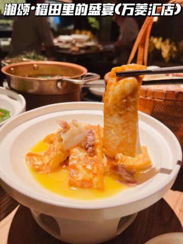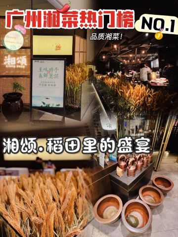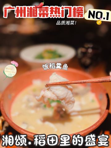 正牌一旧云藏着市井里的广州生活|湘菜中的爱马仕惊现万菱汇 没想到湘颂.稻田里的盛宴开到了天河区,要吃湘菜🫑中的爱马仕可以再跑去天河万菱汇了!坐扶手梯抵达二楼就看到他家特有的金灿灿的稻穗🌾门面和大堂,仿似在稻田里吃大餐,真是氛围感满满的约会餐厅🍴,难怪一到饭点就要排长龙了! 推荐: 🐟饭稻羹鱼,切片鲈鱼、河虾放入高温火山岩石盘,倒入煎禾花鱼熬制汤底,瞬间紫苏+米椒的香气扑鼻,先喝汤再吃嫩鱼肉,真是人间美味! 🌶炭火烧辣椒黄心皮蛋,看起来红彤彤的辣椒但吃起来不算很辣,皮蛋弹牙开胃! 🐷炒黄金六两,好多人推荐,薄切的猪肉吃起来有嚼劲,和青椒太搭了! 🍻叹杯米浆桂花香,解解辣! 🐔鸡汤萝卜苗很清甜,连汤都喝光! 饭后鲜果茶来一杯每鲜说鲜果 🏠餐厅:湘颂.稻田里的盛宴(万菱汇店) 🚗地址:天河路232号万菱汇L3楼40A号铺(北1门手扶梯上三楼后转) #湘菜 #天河区美食#