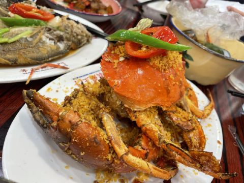 避风塘炒蟹,椒盐濑尿虾,奶油大头虾,捞起生肠,沙姜花螺,鸡蛋炒米粉,椒盐粟米,古法煎香黄花鱼,黑椒雪花牛柳粒