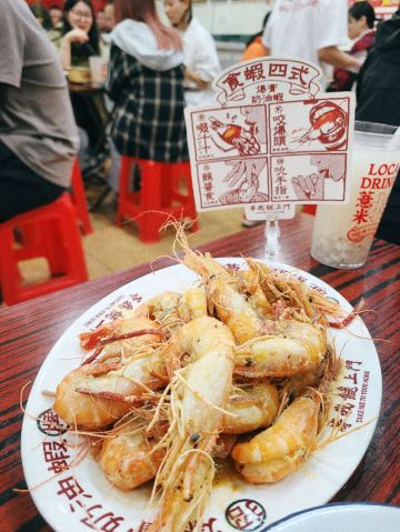 amydog浓浓港风,年轻人喜欢的市井Style😋 2023-4-25 85分钟的排队等待,90分钟的规定用餐时间,进店和离店时候排队的人数几乎没差,小姐姐说每晚都要营业到1点半😮💨 招牌爆膏奶油虾,招牌生姜花螺,复古菠萝冰,件件都好吃😋 【口味】 |招牌爆膏奶油虾^118,第一次吃奶油味的大头虾,味道非常绝,香甜的口感,虾又大又壮,其实想象并不便宜,不是大排档价格,哈哈哈哈哈 |沙姜花螺^118,到广东就是要吃螺啊,鲜嫩多汁就对了,而且又大,吃着吃着也会饱 |菠萝冰^22,店门口糖水铺的,也是同一家店,真的很需要这样子一大杯降温,比起朱光玉的招牌饮料浓郁多了,菠萝也是新鲜菠萝 因为在酒店附近,所以7点的时候先过来拿了号回酒店睡了一觉再过来 Take me to your home,波霸🍍喝完菠萝冰,艾小米能不能霸气一点呢😊可惜菠萝冰杯子上却印了飛機二字🥲 最新荣登2023必吃榜,实至名归📣 又是不快乐的一天鸭⛅️@广州等我餸上门海鲜大排档天河南#艾小米的春季拉力赛# 2023 D6