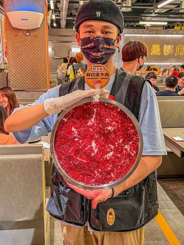 纯手打的虎虾滑,毛肚(小份),鲜切黄牛肉,火锅厂现炸小酥肉,屠场生抠鲜鸭肠,黄喉,鲜鲜鲜鲜鸭血,自助雪糕,香卤耙耙大鸡爪,怂奶茶,下水三兄弟