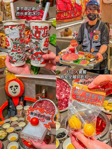 七七喝喝趁着假期约上朋友来试下一直想吃的火锅 才发现原来这家店🧋奶茶可以自己diy 哈哈哈~今天我们是周杰伦女孩 - 🧋开心加料奶茶 一共有8️⃣种料可以选 豆花➕奥利奥➕小珍珠➕脆啵啵 ➕麻薯➕碧根果➕奶盖➕仙草 吃火锅的快乐加倍了啦‼️ - 鲜切黄牛肉 看见每桌都点了,我们也要,嘻嘻~♂️小哥哥还不忘摆着姿势,仪式感拿捏了🤏 牛肉颜色鲜红的,很新鲜 下锅10秒就可以吃了,牛香味十足 - 🧅荔浦鲜马蹄 因为是当季新品,所以马蹄特别鲜甜每一个个头都很大,入口爽脆 听我说,一定要试下哇‼️ - 芭乐茉莉沙冰 茉莉茶底很清香☘️ 用的的红心芭乐加上茶冻 味道清爽解腻 - ♀️打工人套餐 鲜鸭血➕香卤鸡爪➕猪脑花➕大刀腰片 还有安全帽钥匙扣呢‼️ 🦆鸭血的造型很有创意,吃起来嫩滑 鸡爪卤得很入味,口感糯糯的超正 🧠脑花和腰片吸收汤底后非常鲜美 - 还要说一下,这里整个气氛很好 晚上有快闪舞蹈,🎂当日寿星还有庆祝仪式 等闺蜜生日还来哈哈哈 - 🏠:怂重庆火锅厂