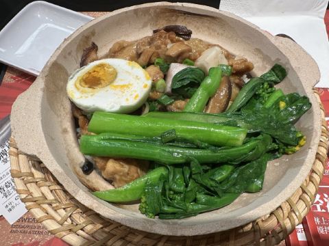 来到了市桥,路过了这一家煲仔饭餐厅,感觉我也应该要尝试一下,拔草。餐厅环境还行,可以扫码自行下单,团购的需要到柜台下单,等待的时间有点长,因为都是下单后马上煮的,而且煲仔饭现做也都是有点时间的。不过我个人觉得这里做的不错,米饭软硬适中,肉肉挺多的,青菜更是难得,条条都是差不多大小的菜远,都是菜心,很嫩。酱料用的是李锦记品牌,放在桌子上面自己按需添加。