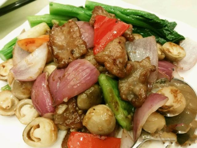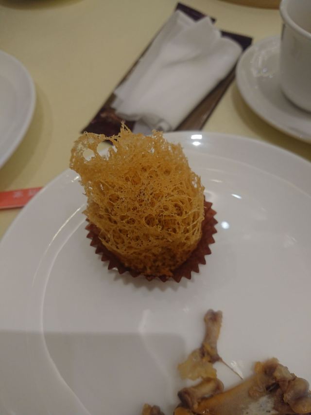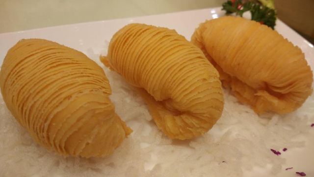 lilysuun这家酒家其实留意到很久,一开始最吸引我的是特价古法瓦撑鸡煲翅还有太子片皮鸭,不过要注意大厅享用才是498的鸡煲翅特价,供4人享用,片皮鸭想要吃的话也是只限于晚上的大厅,而且满4人消费满300才可以预订,我觉得下次再来吃一定要选择晚上提前预约,这样我就可以2个特价都吃上了,哈哈。 交通方面,我是直接坐地铁到体育西路站,从G出口出来往黄埔大道方向走,过地下隧道B出口(右手边的出口)出来就是保利克洛维了,一开始没有留意到有直达观光梯,傻傻地走到大楼里面坐手扶梯上去,结果只能从三楼再换观光梯上去,感觉上这里的标识不多明显,虽然从大楼外面看到兴悦酒家的牌子。 因为打算早茶和午餐一起吃,所以点了点心和炒菜。 银萝千层酥20元 ,一口下去外皮确实很酥化,一般外面吃的萝卜酥,里面的萝卜会做成泥比较多,而且味道上不一定会吃到萝卜的甜味,这里的确是可以吃到萝卜独有的香甜味道,而且我咬开后还可以拉出萝卜丝,真的是拉丝,有惊喜。 鸡丝春卷20元,春卷也是经常点的点心之一,吃多了油腻,皮厚,肉馅少又不好吃的,这次吃到的又有不同哦,皮很饱脆,肉馅味道不错,而且吃起来一点不油腻。 黑松露香芒脆虾球78,点这个完全是为了满足我想吃黑松露的愿望,金黄色虾球搭配上香芒和黑松露,果然是一个不错的搭配。 浓汤泡手打鱼腐68元,汤底奶白色,手打的鱼腐也是少见的白色,因为平常吃到的很多都是外面那种黄色的,这种白色的口感更加软绵,有点像是在吃棉花糖的感觉。 鲜菇汁烧牛仔肉68,基本上对牛肉最没有抵抗力,牛肉比较嫩,酱汁味道很搭。 服务态度不错,总体装修环境很好,价钱在这地段来说不算特别贵了,点心出品给我惊喜,炒菜也不错,下次一定要试试店家的那2个特价菜式。