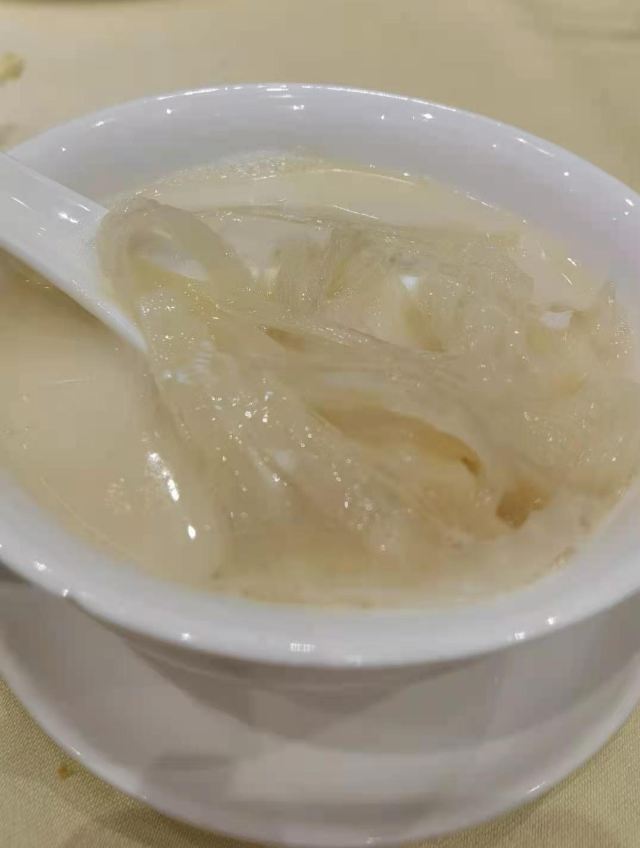 魔女锦鲤屋企人家庭聚会,选定了来兴悦酒家吃饭。兴悦有两家分店,一间在环市路,一间在天河。天河的店是新开的,而且也方便大家,所以就决定去天河分店,提前电话预订,原本想订房间的,但房间消费不了特价菜品,特价菜品在房间都需要正价收费的。所以为了节省还是订大厅吧。 兴悦的天河分店位置就在保利克洛维二期的四楼,位置很好找,靠近黄埔大道的公交车天河站一下车就能见到(花城汇往中山一立交方向往前走)。必须提醒一下上去餐厅最好是坐观光梯直达4楼,观光梯就在摩天轮对着,小喷泉的后面,LINDA LIVE的隔壁。吐槽一下这部观光梯有点隐蔽,没有明确的指示,如果商场能增加一下指示会比较好。 乘坐观光梯到达4楼就是兴悦餐厅,电梯一出来就看见摆着几个特价菜牌,最为吸引的是鸡煲翅,原价1280元,特价只需498元,不过这个特价仅限大厅使用,房间就要正价收费,好在我们订了大厅就可以享受特价了。另外太子片皮鸭四位以上消费满300元而且预订了就可以18元一只享用,超级便宜喔….. 进入餐厅就觉得这里的装修很气派,走的是高端路线,大厅明亮整洁,坐的位置也很舒适。服务员很快就带位入座,大厅的茶位费8元一位,看了一下菜牌点餐,多款的特色高端粤菜选择,在服务员的介绍推荐下很快就点好菜了。上菜的速度也很快。 首先推荐的是这里出名的,传说中最好吃的叉烧包,新鲜滚热辣上来就即刻品尝,一口咬落去很松软可口,里面的叉烧肥瘦相间,原本我是不吃肥肉的,每次吃叉烧包都会把肥肉挑出来,但这里的叉烧包吃落去并不会感觉肥腻,吃完一个还想继续再吃。 银萝千层酥也是很值得推荐,平时在外面吃的都是榴莲馅料的多,这里的却是萝卜馅料,外酥内软。外皮超级酥化,可以说是我吃过这么多酥最好吃的。 这两个点心都是超级喜欢的,说完点心还是说回菜品吧。荷叶蒸污糟鸡,鸡肉嫩滑,而且吸收了荷叶的香气。 至尊千叶豆腐,这个很考厨师功底的一个菜色,听说还是得过奖的,外型美观,豆腐豆味浓郁而且香滑。 浓汤泡手打鱼腐,鱼腐卜卜,白白滑滑的很可爱,配的汤底也很不错。 今晚的重点菜古法瓦撑鸡煲翅,浓浓的鸡汤底再配上足料的八两翅,汤底香浓,鱼翅爽滑,美容养颜啊。 提前预订位置还额外赠送了甜品,送给我们的是红豆西米糖水,味道也很好喝。 总体菜品味道都很好,价钱有少贵,需要加收10[%]的服务费,但也有很优惠的特价菜色,而且一分钱一分货还是很值得的。