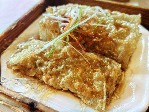 环境超赞的一家广州酒家分店,自带精致园林,十一点十五分到店,前面有三桌等了 15 分钟左右,上菜较快,马蹄糕清甜爽口,腐皮卷也不错,环境菜品服务性价比完胜白天鹅,老字号的实力不容小觑,下次来广州再试试其他菜品。