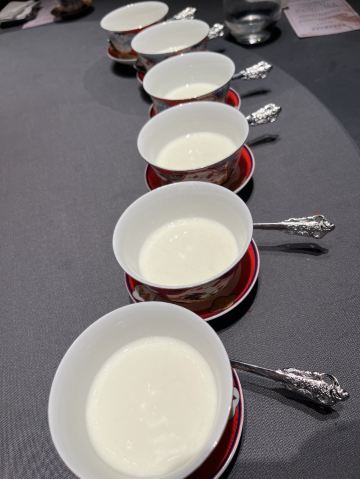 饭醉分子闫涛遇上御膳,堂评汤品 有朋自远方来,先喝汤再上菜,御膳汤品伺候来。 辉哥和御膳汤品的疙瘩还没解开,我陪京城白哥先来暖暖场。 看得出来餐厅对昨天的晚宴做足了功夫,让我吃惊不小。甫一入座,就看到荣获了wset4级认证的侍酒师已经开启了一系列精选的佳酿,专为昨晚的菜单量身定制。 待到起菜,则是由主厨余毓根师傅全程亲自操刀,难怪京城的朋友对于御膳汤品赞不绝口。 白哥被昨晚上的鸡给惊艳到了,竟然说是此生吃过最好吃的鸡!余师傅说是用帽峰山的走地老鸡做了传统的太爷鸡。我认真辨析过后,感觉这是豉油鸡和太爷鸡的“合体”,鸡种火候都非常好。入口既有甘口的豉油糖香味,也有优雅轻盈的烟熏香气,的确是好鸡。 时尚掌门人周舟兄对那一煲汤动了肺腑之情。我领教过京城的干燥气候,也为老广经常有汤水滋润而感到庆幸,更加深刻理解周舟兄的一番深情——毕竟普通老广也日常不会喝这般下重手的汤,铺陈得太厉害了,这一煲蚝豉发菜章鱼煲莲藕,根本是超级佛跳墙的汤汁嘛!汤水劲道有气力,只要能够接受价格,绝对是合格的好汤。 眼见在场有几位时尚界的企业家,余师傅亲自上阵料理了压轴的网红主菜,在电视剧《繁花》中名扬华夏的“仙鹤神针”。这道脱胎于潮菜鸽吞翅的粤菜名馔如今已经演绎得有多个迭代版本了。众人的评价是:如今的厨师除了能言善辩之外,还要懂得自己打灯,赛道太卷了! 我对余师傅的那道花竹虾激赏不已。展示食材时还以为是要做“虾身捞起”,但转念一想,开局时就有一道厚切象拔蚌条捞生腌汁了,断不会再来一道生腌,果然,花竹虾一虾两吃,美极虾头用来下红葡萄酒,虾身则用榄仁快炒,可以搭配侍酒师精选的白葡萄酒。餐厅的茶叶师也是功力深厚,全程不断调整佐餐的配茶。这道“榄仁火腿滑蛋炒花竹虾”,配了一道蜜桃乌龙,倒也相得益彰。 我觉得令北方朋友拍案叫绝的那煲汤水有些偏甜,而他们对我甘之若饴的“南北杏仁冰淇淋”发出了“有苦味”的质疑,众口难调是常态,和而不同真君子。 人世间有多少是非曲直啊!遥想当年,这间御膳汤品的上一手是老黄的餐厅,在和物业分道扬镳后,老黄可是挥着大铁锤把餐厅砸个稀烂才扬长而去的,如今御膳汤品在此经营得硕果累累,也算是结得善缘了。