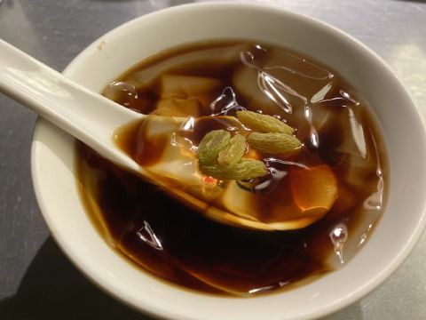 TAN YU HAI YIN DOU HUI CHENG DIAN点评上面的活动,抽中了一份清凉套餐,包括一杯桃桃乌龙和一碗鸡丝凉面,选择了珠江新城海印都荟城的这一家分店。餐厅具体是在,从国金中心出来进入海印都荟城向前走一点就是了,没有在大路上,在岔路上的,店铺好像都几年时间了,一直都是默默无闻的。来到这里的时候是某工作日中午,12点前到不需要等位,晚一点就坐满了。 {鸡丝凉面},分量不大,但是对于我来说,刚好的分量,要求了少辣,不能吃辣的要注意,凉面比较辣呀。凉面很好吃,我本来就是喜欢吃面食的人,面条有嚼劲,上面放了鸡肉丝,还有花生碎,味道棒极了。 {桃桃乌龙},好大的一杯果茶,分量太惊喜了,我要求了飞冰,糖度好像说是不好减,所以也算了,喝起来味道刚好,不会觉得太甜,而且里面放了椰果,吃起来也有口感。放了一粒小番茄和半个小青柠,放番茄做装饰的饮品还是有点特别,第一次见。 {红糖冰粉},好好吃,特别是吃完了辣以后,来一碗冰冰凉的冰粉,舒服。红糖水下的分量刚好,不会太甜,冰粉有不少,清澈透明,滑溜溜的。 这里吃饭,无论你是多少个人用餐,都会有小吃赠送,包括山楂球、香蕉片和芒果干,另外纸巾免费,茶位免费,太棒了,现在餐厅都收茶位费,而且越收越贵,而这里却是反之。店里的服务非常好,上菜速度也快,靠近我公司,以后可以常来。