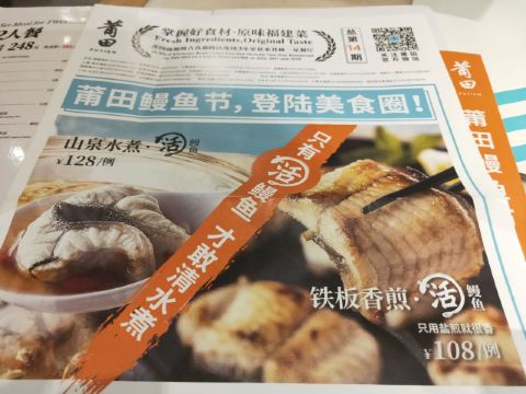 小简简616广州探店 | 打卡新加坡米其林一星餐厅·莆田餐厅 这天刚好去太古汇逛街,差不多到饭点时间经过我醉爱的莆田餐厅,发现他们又推新品了,这次的当季食材是肥美的活鳗鱼噢果断进店试试! · 活鳗鱼目前推出了两个做法: 山泉水煮活鳗鱼 既然只是山泉水煮,那对水质的要求一定有讲究!海拔2158米武夷峰的山泉水烹煮活鳗,食材虽然简单,味道也比较清淡,却能够真正吃到鳗鱼的鲜美 · 铁板香煎活鳗鱼 上桌以后,鳗鱼还在烧红了的铁板上滋~滋~滋~响,鳗鱼肥美肉厚,入口甘香,只用盐煎也觉得回味 试过了【莆田鳗鱼节】的两道新菜,当然不能错过店里的几道招牌菜 · 虾苗拌头水紫菜 大家都知道头水紫菜产量低,营养价值高,是紫菜中的极品!这道虾苗拌头水紫菜是店里的销量冠军,开胃小菜首选! · 九转小肠 感觉是道功夫菜!卤汁入味,入口味道和口感都刚刚好,十分难得! · 百秒黄花鱼 必点菜式!几乎每桌都点了这道菜噢!莆田餐厅还在百秒黄花鱼的基础上还创新出番茄味和剁椒味,让大家更多的选择,点赞 · 莆田扁肉汤 镇店之宝,肉泥做的皮比肉馅还香!吃了一碗表示还要的我,墙裂安利大家餐前来一碗试试‼️ · 莆田荔枝肉 味道酸酸甜甜,就连不爱吃咕噜肉的我也对这道菜情有独钟拍手称赞 · 新加坡米其林一星餐厅,目前广州 两家哦,人均消费只要100+太划算了 · 莆田餐厅(太古汇店) 天河路383号太古汇商场MU42 · 莆田餐厅(太阳新天地店) 马场路36号太阳新天地3层