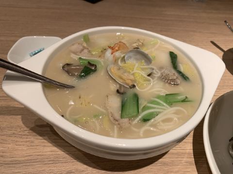 婉儿Chan为了吃哆头蛏,特意过来打卡。点了销量冠军-铁板盐焗蛏和当季才有的红菇鲜蛏汤。 铁板盐焗蛏:78元。没有想象中好吃,蛏子是原味,没有一点点咸味,蛏子也没有期待的大只。有几只还有沙子。 红菇鲜蛏汤: 98元。这道菜里的蛏子没有盐焗蛏的多,但是由于蛏子吸收了红菇的鲜味,蛏子肉更加鲜甜和饱满!汤也很鲜美!总体味道不错[OK]就是性价比不高。 扁肉汤:15元一碗。真的好小好小一份,但是挺好吃的。肉香汤鲜。 兴化米粉:强烈推荐!太好吃了!满满的料:虾、瑶柱、紫菜、白贝、香菇、白菜和炸花生等等!米粉好细腻,吸收了食材的味道, 九转小肠:68元。小肠层层叠叠,真的有九层,弹性十足有嚼劲,也入味,就是分量比想象中少挺多的。 莆田卤面:里面的料和兴化炒粉是一样的。面好滑,汤很鲜美,好吃😋! 香酥芋鸭:皮酥脆,芋泥裹着鸭肉,可惜有点鸭骚味。个人不是很喜欢。 餐前送的百年老树荔枝:不是很新鲜,有些甜,但是肉一般般,不太喜欢。 [服务铃]服务: 对于米其林一星餐厅而已,服务有些不到位。两个小时的用餐过程,只主动过来倒一次水。有时叫服务员很难叫到。