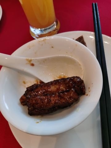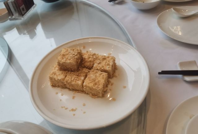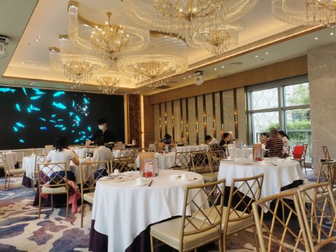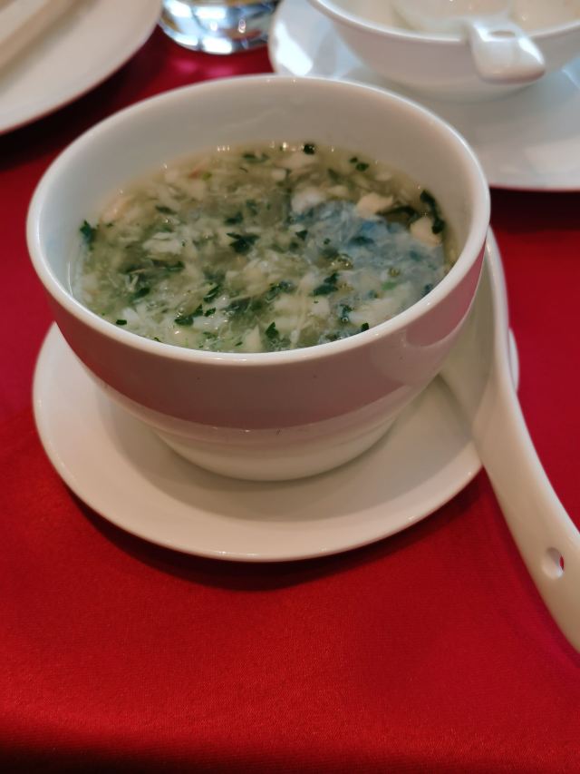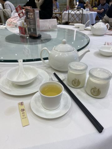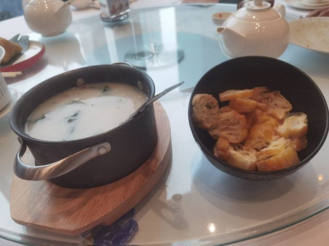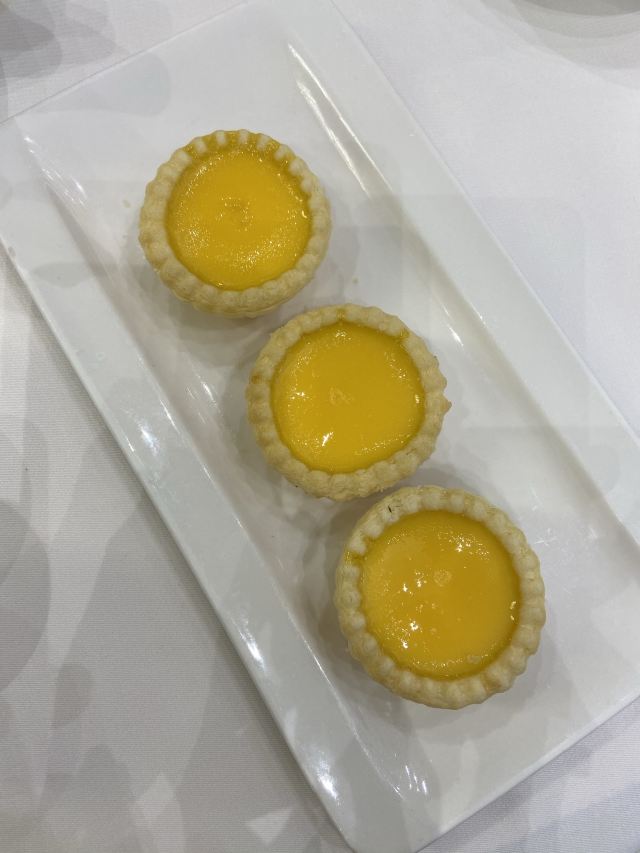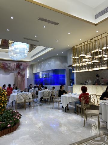 开心吃喝每一天环境好好,大堂接待处好大,还可以看到外面的花园,大厅分了两个区域。富丽堂皇的装修,如果来摆喜酒够体面。 大厅有大投屏,地方宽松,坐得挺舒服,虽然人多,但不会太吵,比普通中餐馆要好。 有几款特价点心,其中酸辣牛杂汤挺好喝,接近奶白色的汤,加有胡椒粉和酸萝卜调味,喝完感到有一股暖流在肚子里,好舒服。 叉烧酥十分酥化的外皮,带有一点点蛋香味,轻轻咬一口,满嘴都是酥皮碎,馅料口感细腻柔软。 香煎萝卜糕带有胡椒味,香喷喷,小时候一直很爱吃,过年时必吃。 翡翠带子饺一笼三只,爽卜卜的贡菜夹着带子碎,鲜味十足。吃起来还有肉汁。 高筒葡挞必须趁热吃,味道不错,口感够滑。
