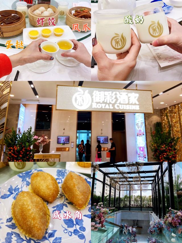正牌一旧云打工人的午餐|老广的叁茶两饭呢度都可以满足 打工人👷♀️午餐既要经济实惠,又要好吃营养,来御彩酒家就啱啦。米其林厨师团队出品就系好,菜品都不错。 🏠环境: 系丽丰中心三四楼,装修真系欧式,金碧辉煌。特别中意楼梯,装饰晒d花球,摆拍真唔错。四楼还有个室外花园,好多autie系度飞丝巾拍照。 🍽推荐菜: 🫖铁观音茶位8元一个,成壶水冲够方便,见到工夫茶d小杯真系有d怕怕啦。 🐔岭南鸡蛋挞,18元有三个,分量细细不会太甜,可惜外皮不够酥化。 🦐御彩虾饺皇,29元四只,喜欢这种弹牙的澄面,里面有很多虾肉,新鲜! 🍮山西枣皇糕,18元足足有四件,甜点一直都系我最爱! 🍗豉汁蒸凤爪,23元有很多只爪,很入味! 💥珍珠咸水角,18元三个,炸的很脆哦。 🍦手工自制酸奶,12元一杯,喜欢这种肥肥胖胖的瓶子装着,口味有点像老酸奶,好好次! 💁服务: 服务员够殷勤,服务好。 🌈🌈🌈🌈🌈🌈🌈🌈🌈🌈🌈🌈🌈🌈🌈 🍽餐厅:御彩酒家(东风东路店) 🚘地址:广东省广州市越秀区东风东路丽丰中心三、四楼 ⌚️营业时间:8:00-15:00,17:30-22:00 #新年玩乐攻略# #我的家乡年味儿# #新春摄影大赛# #分享我的新年flag# #春节礼品清单# #同城种草# #吃在广州# #越秀区美食# #茶楼#