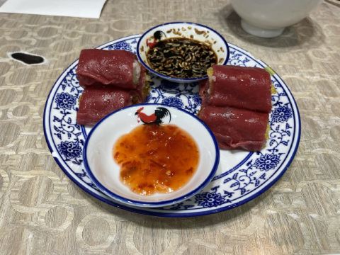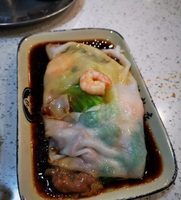 月印苍穹在珠江新城这种寸土寸金的地方,也有这种本土的饮食品种,当然,因为地段限制,价格并不是很平民。周边写字楼众多,所以人最多的时候是工作日中午,其他时段都还好。出品种类并不多,还是专注地以肠粉和粥为主,新品种也主要体现在粥和肠粉上,这样专注一个产品,并把它玩到顶级,估计比到处开花但没一个擅长的更好吧。事实上银记改头换面、全部门店统一装修之后,出品也和传统的本地肠粉店有所区别,比如有创新的黑松露鲜虾、安格斯肥牛肠粉这些中西合璧的菜式,我试过黑安格斯肥牛肠粉、王牌肠粉、艇仔粥、咸骨鲜虾粥,总体感觉粉和粥的分量还是挺足的,也能实打实地看见大虾和牛肉,就是觉得鲜味没有完全进到粉里去。肠粉皮薄透明,韧劲欠缺一点,不能和布拉肠比。总的来说口味中规中矩,外地人体验一下广州特色美食还是挺好的,毕竟食材眼见为实;一个人快速解决一下用餐问题,也是个好去处。但工作日中午最好避开上班族集中就餐时段。