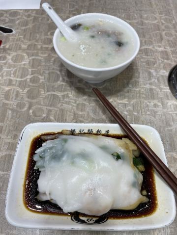 每一次来广州都会尝一尝应急肠粉,这一次也不例外。跟着地图来到了这个华丽店,门店不大,多少有些失望。失望的原因不是因为肠粉的味道,而是因为品类不全,点了几个东西都说没有,那为何还要在价目表上显示呢?比如说想喝猪肝粥,就没有只有枸杞猪肝粥。 银记肠粉的调料是他的一大特色,特别是秘制的辣椒酱,真心好吃。 在广州生活真心不容易,早餐一个肠粉一碗粥,16大洋就没有了。