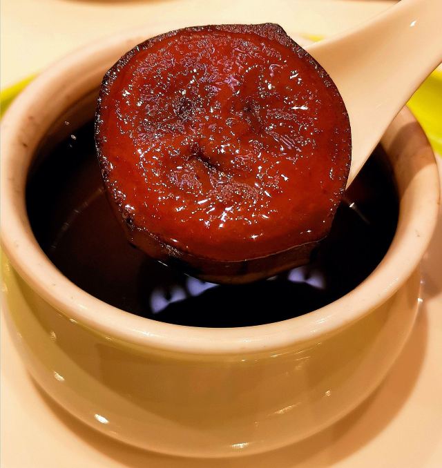 饭醉分子闫涛夜尝熊猫 长隆集团的熊猫酒店刚刚开张就进去试住了一把,毫无疑问这是一个定位于亲子类型的酒店,但昨晚受邀参加一个熊猫酒店的私局,又让我对这家酒店的印象大有改观。 长隆集团有一个中国各大餐饮集团都不具备的优势,当然很多人以为这是旅游资源的优势,但我想说的是,他们是一个扎根深耘于番禺珠江入海口地域性的产业龙头,作为中国第二大水系珠江,入海口的各种风物特产宛若沧海遗珠,散落在番禺的各个水乡村落里,要想以博览群书的方式饱享美味,长隆集团有着不可替代的资源优势。 其实长隆的创始人当年也是餐饮业出身,只不过旅游业做得太璀璨夺目了而已,昨天的这一顿私伙局,还是有许多风味独特的菜肴,比如说用大蕉炖的素汤,就很清润细腻,用硕大的蕉来炖汤也是我平生首见。 用陈年花雕酒来醉当下的网红黄油蟹,是一个小小的冒险尝试,黄油蟹和干巴菌今年在京沪两地大放异彩,江南醉蟹的手法来处理一试之下也可圈可点。当然,每次来到番禺,就不得不提那摄魂夺魄的桂花蝉,虽说桂花蝉曾存在于许多老广州的记忆当中,但要吃到品质上乘料理得当的桂花蝉,我们还得感激苏先生对此物的钟爱,以及“君子志于择天”的美德,美食其实是一种人格的抽象化表现啊!