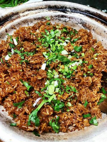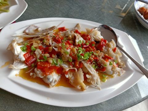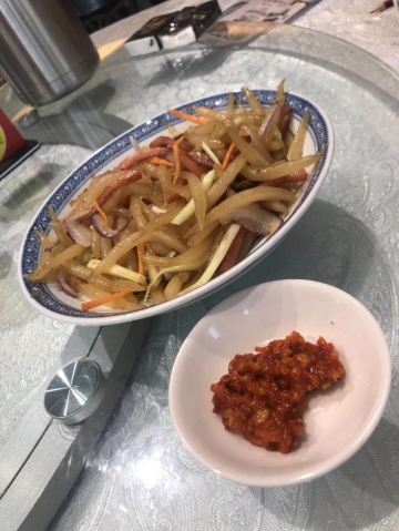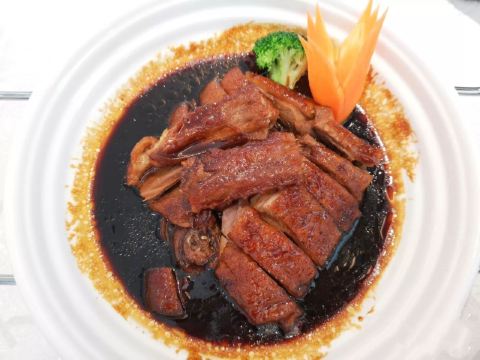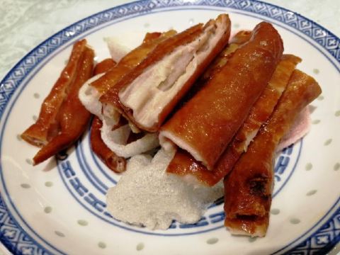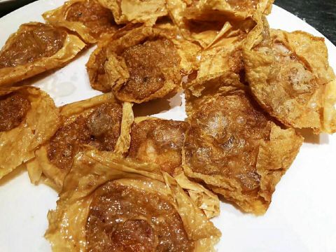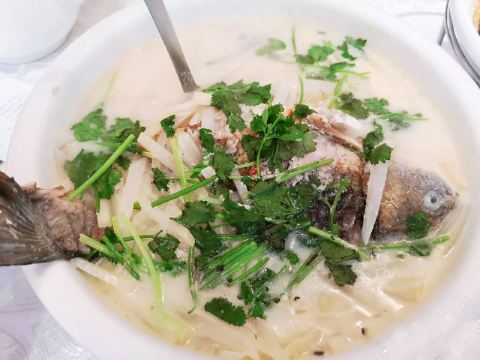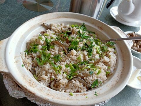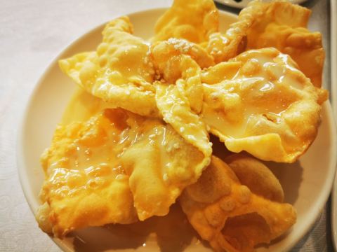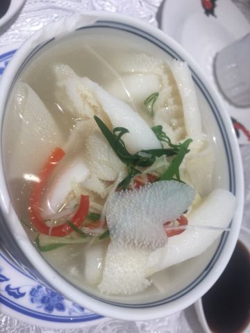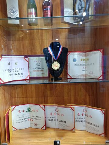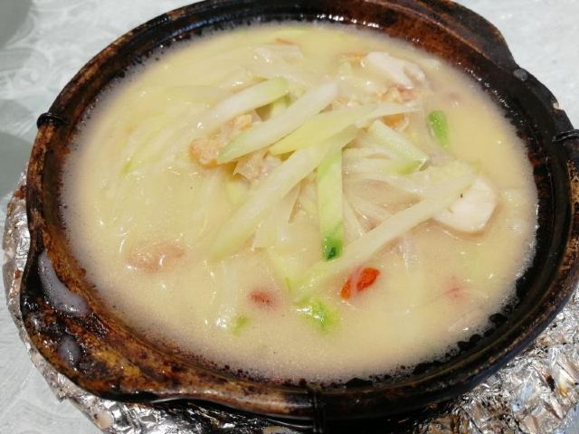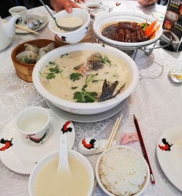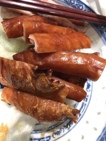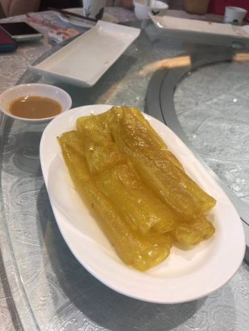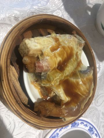 魔女锦鲤据说是老字号的一家粤菜酒家,如果不是朋友约来这里吃饭还真是不知道。位于沿江路的大厦内二楼。门口比较残留,但餐厅内的装修还是不错的,还是正对江边,可以看江景。在餐厅门口的橱窗也摆放了很多获奖证书。 这里有早茶和饭肆,中午来吃饭都可以点茶类点心的。 这里主打的都是粤菜,看了一下早茶的餐单,有很多传统的点知,例如鸭脚扎和鸡扎都有,这个广州的早茶很多餐厅都是没有的。只在香港的莲香居吃过,这次来也尝尝这里的做法。点了棉花鸡扎,用腐皮包裹润肠,冬菇,竹笙,淮山等等丰富的材料。 蛋挞也是这里推荐的,需要趁热吃。 吃完一些茶点再试试这里的粤菜。 祖传五杯鹅,特价菜,这里的黄牌之一,卤的酱汁味道很好,每一个部位都很入味。 脆皮炸大肠,也是这里的推荐,吃的时候不觉得很脆,但也不会韧,味道稍微欠缺了一些,需要蘸酱汁一起吃比较好。 猪油捞饭,超级推荐,米饭很香,个人觉得刚好,不会很油腻,而且锅底的饭焦才是精华,香脆可口。 其它的小炒菜色味道都较为出色,大家都很满意。 下次再来这里喝早茶,试试这里的点心。