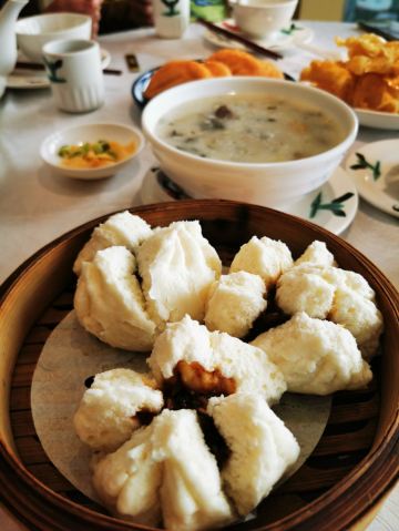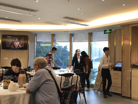 爱旅行的猪仔提前几日电话预订的周末早上第二轮的窗边位置,景致无敌啊 要是现场等位的话人超多不说,还不知道会安排到什么位置哦 有二楼和三楼,这次去的是二楼,桌椅位置间隔可以 从带位到用餐期间收碟加水,服务员也都挺殷勤,完全没有之前点评上面说的那种耍大牌高斗的感觉 点心品种眼前一亮哦,要品尝消失的粤式点心来这里就对了 儿时的很多点心这里都有供应,恨不得都来上一份啊 七彩啫喱糕吃的就是情怀 菜干陈肾咸骨粥有捞不完的陈肾 榄仁萨琪玛水平接近白天鹅出品了 猪润烧卖做法独特 唯一踩雷的是香煎虾米肠,煎得有点过头了,面上的虾米基本是焦黑的 tips:埋单前可以看看银联云闪付是否有200-50优惠
