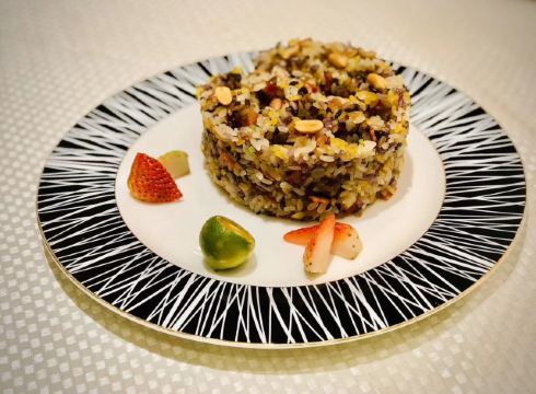 蛋白生磨杏仁茶,金泊虾饺,大哥叉烧皇,铁铁叉烧皇,港式南瓜煎堆,富临皇宫金牌乳鸽,招牌虾饺。,点心拼盘,烏金流沙包,火焰乳鸽,皇牌香妃鸡,彩虹五色炒饭,堂煎安格斯牛仔粒,花胶泡时蔬