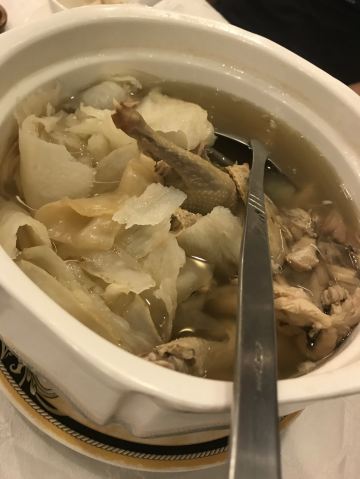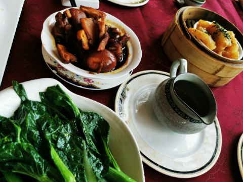 爱旅行的猪仔五一假期到云道逛逛,逛完正好过来吃个午饭 【服务】中午不到12点已经需要排队取号等位了,好在咨客们都很好,主动建议大家继续周围逛逛,轮到的时候电话通知,疫情期也避免了人多聚集不安全 18元/位的茶位,服务员挺勤快,会主动过来帮忙加水和倒茶 【环境】过来的话建议首选南越厅或者码头,环境最新净而且通风好,很舒服!我们第一次过来没有经验,按安排去了二楼的一个小厅,环境有点残旧,胜在桌子间间隔都有一两米 【出品】招牌市师鸡名不虚传,皮爽肉滑得来还不会像白切鸡那样肉带血丝,蘸酱有蚬肉腐乳和姜葱蓉两种可供选择 紫苏蒸蹄筋虽然是个点心,不过真材实料火候够,老人家也能吃 猪脚姜煲的时间应该也够,猪脚很霖 青菜心是唯一败笔,感觉没全熟有菜青味