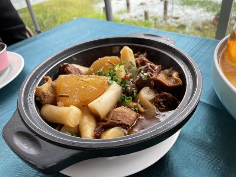 餐厅位于麓湖畔,依山傍水,风景优美,厅内装修颇具岭南风情,配上古色古香的摆设,高档大气,菜品精致,广东风味浓郁,推荐黑椒牛仔骨和招牌市师鸡。