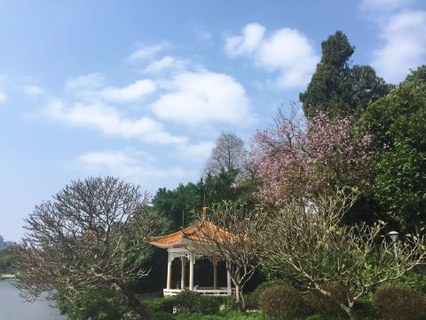 SophyJiang漫旅绘鹿鸣酒家是值得打卡的地方,因为在公园中心湖边,所以略偏远一些,打车需要绕湖半圈,不过也正是如此,风景才格外好。 [环境]亭台楼阁那种,一楼有室外露台位,二楼有临湖窗边位,总之坐拥幽静宜人的湖景和云展云舒。只是没想到雨天里人气也如此旺,大多是带孩子老人过来喝茶。 「市司鸡」摆盘漂亮,传统名鸡名不虚传;「特色艇家饭」粒粒滋味,砂锅份量也足;「蒜茸炒时蔬」「小炒皇」都炒得鲜嫩青翠,碟头够大,卖相都不错;「三文鱼煎蛋」香甜可口。总体来说出品都是很不错的,是典型传统粤菜的做法。 [服务]老酒家的管理方式,服务很好,上菜也快,就是洗手间卫生不行,国营招待所水准。 吃饭价格还是有些小贵,买单500多。