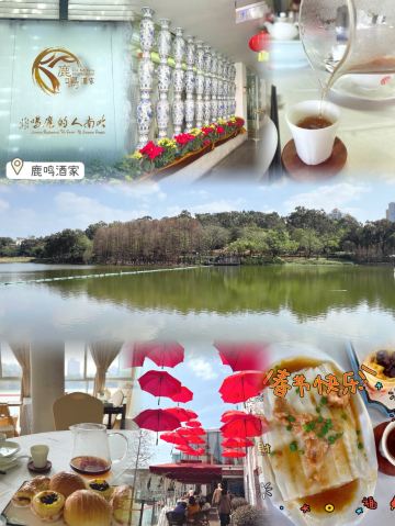 找个阳光明媚的日子里,将身心融入湖光山色里,泡一壶好茶,尝着苦尽甘来的滋味,享受一盅两件的满足,让一直绷的太紧的“你”,放松,放下……『鹿鸣』呦呦,只在心里。 在广州人甚至岭南人的眼中,『鹿鸣酒家』是当之无愧的老字号“网红”。是可以反复和家人一起来拔草,和同学一起来拔草,和朋友一起来拔草……的地方。 『鹿鸣酒家』位于风景秀丽的白云山麓湖畔,依山傍水,环境幽雅,空气清新,以一流园林餐饮环境和正宗粤菜、精致点心出品而著称。开业已有23年,诚信经营赢得口碑,由于周边环境优越不可复制,深得本地人的喜爱和好评。 实用tips: 鹿鸣酒家旁边,就是本地情侣、亲子最喜欢走的麓湖绿道,聚芳园,星海园,湖边、栈道、水杉林、游划艇都是拍人物特写的最佳机位。而且,作为『白云山』景区和『广州云道』的一部分,整个5A麓湖景区所有公园都是免费的。 鹿鸣酒家的招牌点心:蟹子灌汤包、山水豆腐花、蒸凤爪、蒸排骨、牛腩啫肠粉、伦教糕、蛋挞、炸春卷、艇仔粥等。 招牌菜:市师白切鸡,深井脆皮烧鹅、天妇罗爆虾仁、鹅肝酱麒麟鸡、黑椒牛仔骨、白云猪手等。 在酒家消费可以免费停车,服务生指引很清晰,买单时候记得拿停车券。 人均消费:60+(喝茶吃点心),80+(吃饭) 营业时间::8:30~21:00(早茶、午餐、下午茶、晚餐,可以直落) 地址:广州市越秀区麓湖路11号 交通攻略—— 自驾:手机地图定位“鹿鸣酒家” 地铁:5号线“小北站”下,步行1.2km 公交:可乘坐旅游1线、63、245、观光巴士在“白云仙馆”站下车,步行10分钟可到。 @有趣的灵魂在路上