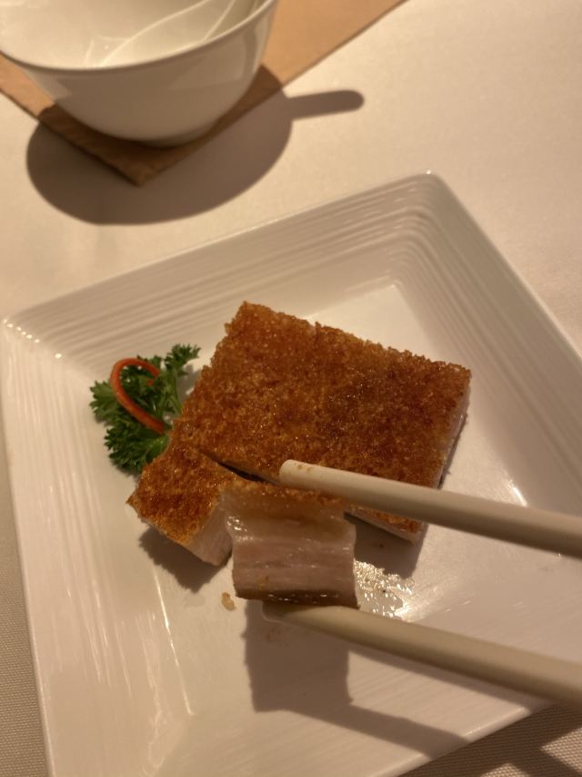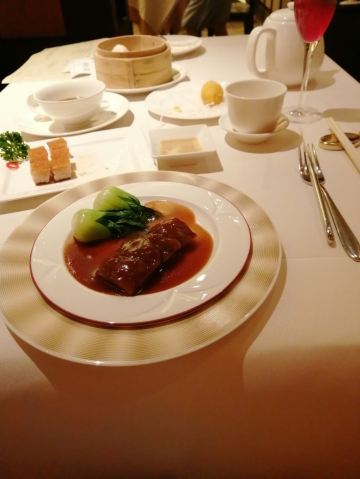 开心就好灬在广州还是非常有名的一家粤菜馆,离白云宾馆特别近,怎么也不会错过这个机会,跑过来打卡,菜品都需要收10%的服务费 冰烧三层肉^上来的时候被分量吓了一下,九块肉加起来真的只有巴掌那么大,但是味道是真的绝佳,一口下去足以惊艳,吃过最好吃的烧肉 贵妃龙虾泡饭^一份可以盛五小碗,龙虾味完全渗入汤和饭中,好吃 润烧bb乳鸽^加上服务费110一只,虽然比较嫩,但是却只能说是还行的水平,这个性价比低到没法说 鲍汁鹅掌^一道不错的美味,鲍汁完美融入鹅掌,鹅掌本身也是很嫩 咸鱼茸银芽炒鸡丝^这道菜是唯一道较重口味的菜品,不过炒得特别入味,很不错 原汁鲜虾饺^相对普普通通的味道 杨枝甘露^小小的一份,味道很浓郁,可以餐后品尝一下 总体来说口味是上乘水准,但是性价比就是较低水准的一家餐馆了,比较适合商务宴请,如果不在乎价格的话完全可以去尝试一下