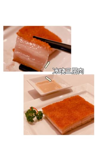 冰烧三层肉,原汁鲜虾饺,飘香荷叶饭,片皮鸭,乳鸽,豉汁蒸凤爪,银萝千层酥,梅仔牛仔骨,烤乳鸭,杨枝甘露,汤甜品,甜品,杏仁茶,脆皮鸡,小炒,黄金虾,杏仁露,点心,龙虾刺身,海鲜,玻璃脆皮乳鸽,鲍汁凤爪,老火汤