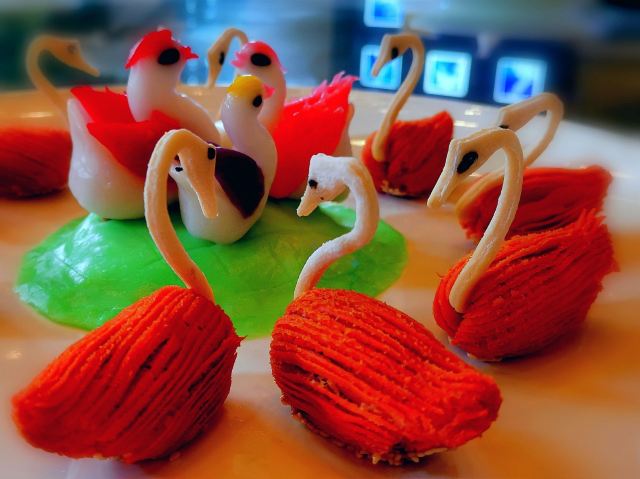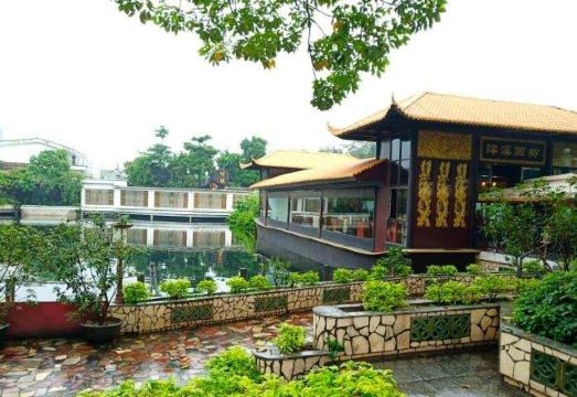 广州知名的知名园林酒家之一,靠近荔枝湾和荔枝湖公园。店面装修的古色古香,小桥流水、假山、园林都有,环境非常优美,还可以坐在湖面的一艘艘小船上吃饭喝茶。白兔饺、马蹄糕、凤爪等茶品点心的质量也都不错,非常精致。