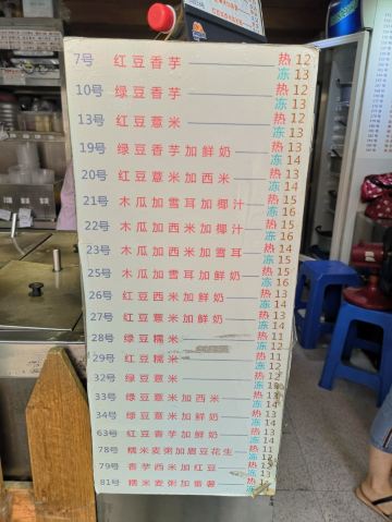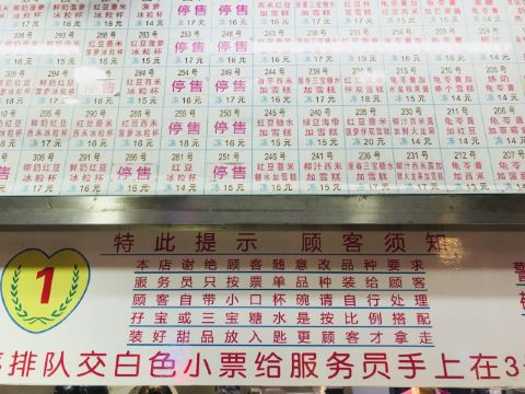 绿豆海带,凤凰奶糊,芝麻糊,香芋西米,冻双皮奶,冬三宝,芝麻胡,糯米麦粥,香滑炒蛋奶,窝蛋奶,汤丸,糖水,红豆双皮奶,奶糊,杏仁奶糊,木瓜西米露,西米露,炖奶,番薯糖水