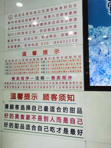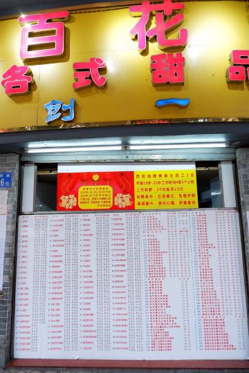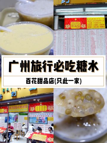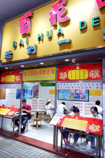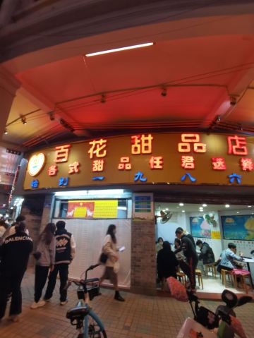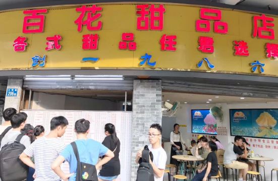 文明路算的上是糖水一条街,百花甜品和玫瑰甜品就是最出名的那两家。百花是开了快30年的老字号,一招一式都是老广州记忆中的味道。红豆沙柔软香甜,凤凰奶糊香浓馥郁,黑芝麻糊细腻稠滑,不同季节还会出不一样的三宝,还有各种奶糊,选择多多。