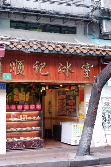 顺记冰室已经开了有近百年,以前广州有四大冰室,现在仅剩了这么一家。镇店三宝就是这里的传统手工雪糕,保持着古老的配方,入口细滑,口感浓郁。“三宝”分别是椰子、芒果和榴莲雪糕,另外这里也有传统的粥粉面等小食。